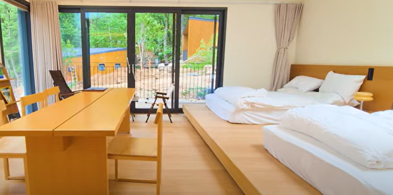 이 외에도 깔끔한 주방, 샤워 시설, 바닥 난방 시스템까지 잘 갖춰져 있어 도심 호텔의 편안함과 자연의 고요함이 공존하는 공간이라는 점이 큰 매력이에요.