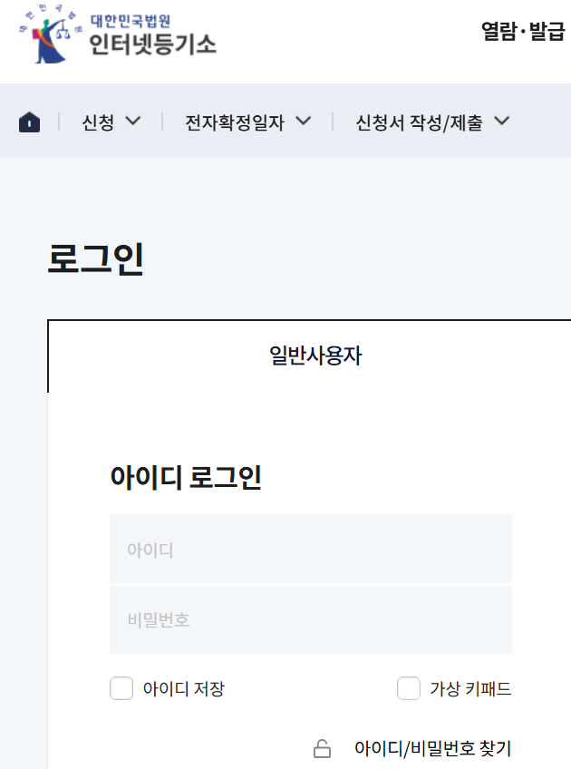 - 사이트 접속: 대한민국법원 인터넷등기소