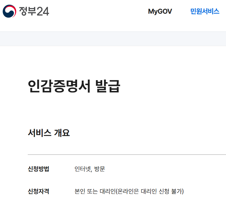 많은 분들이 '정부24'나 '민원24' 사이트를 통해 인감증명서를 온라인으로 대리 발급받을 수 있는지 물어보시는데, 정부24에서는 인감증명서 대리 발급 신청 안내만 가능하고 실제 출력은 불가합니다. 따라서 대리인 발급으로 인감증명서가 필요하다면 반드시 지정된 장소에 방문해야 합니다.