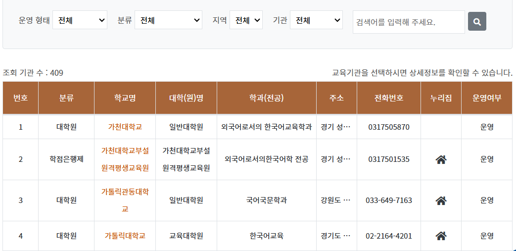 아래를 클릭하셔서 평생교육원 또는 학점은행제 등 본인에게 적합한 교육기관을 바로 검색해보세요.