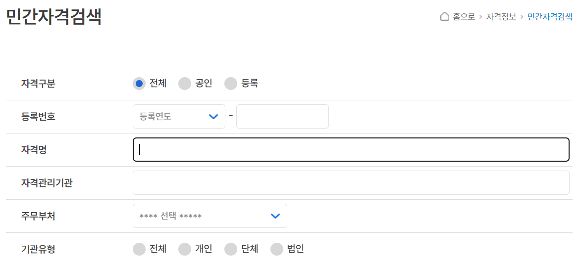 - 주관 기관: 한국직업능력연구원 등록 민간자격증